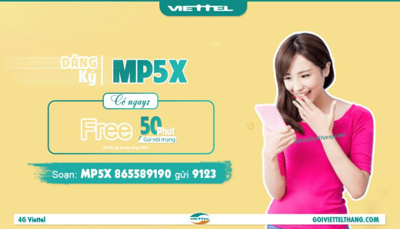 MP5X Là tên gói cước khuyến mại gọi nội mạng Viettel 5k có 50 phút gọi đến 24h trong ngày đăng ký.